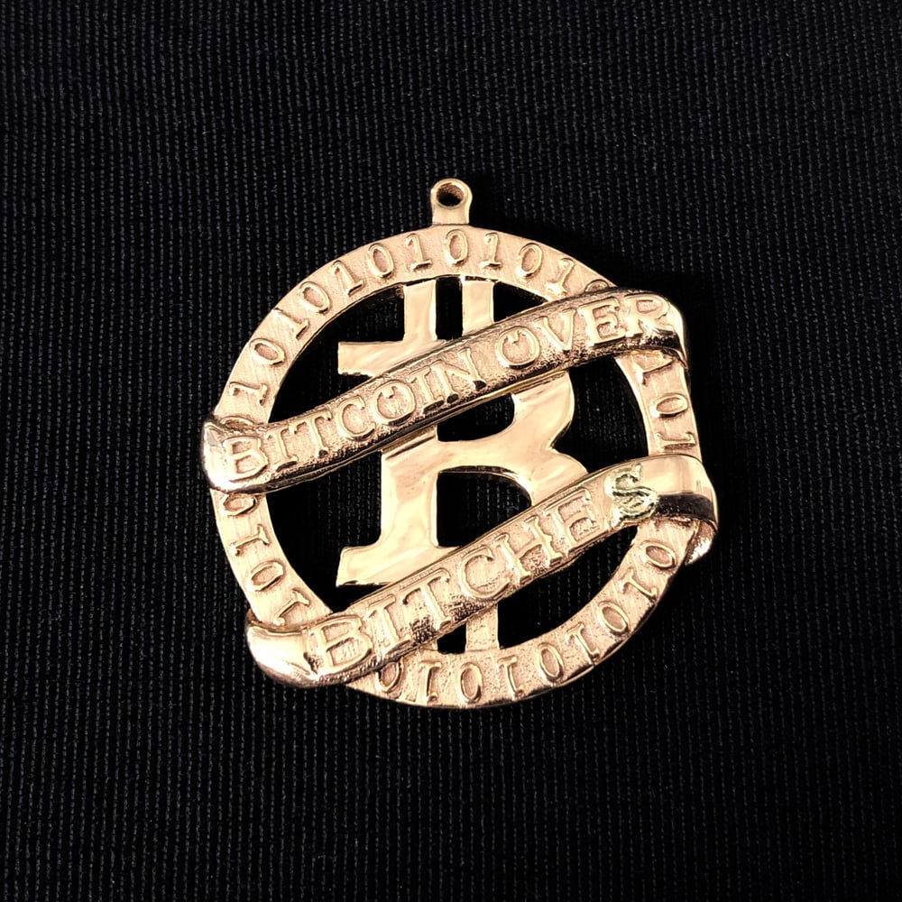 First these 3d models are printed in wax and then cast the traditional jewelers way. This galactic crypto medallion is as gangster as a crypto HODLer can get. Hang it from any chain and let that shit ride.